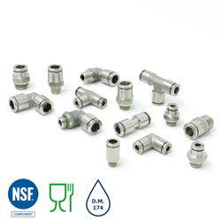 Umfassendes Angebot an Steckverbindern für Wasser, Flüssigkeiten, Getränke und Druckluft. Für metrische oder zöllige Außendurchmesser sowie verschiedene Gewindearten (z.B. BSPT, BSPP, NPT). Hohe Druckfestigkeit (bis 20bar) sowie Temperaturbereich 1°C bis 98°C. Alle notwendigen Zulassungen vorhanden: DVGW W270, KTW, WRAS, NSF und ACS. Zubehör wie Schläuche, Hand- und Rückschlagventile, Durchflussreduzierer sowie Übergangsadapter zur Reduzierung und Vergrößerung. Sonderanfertigung von Steckverbindern nach Kundenvorgabe auf Anfrage.