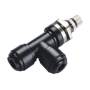 Schottmontage: Der Durchflussreduzierer (Stellventil) ist für Schottmontage geeignet. Dazu hat er an der Einstellschraube eine Mutter. Diese kann herausgedreht werden und der Durchflussreduzierer dann in die Bohrung eines Gehäuses oder eine Platte gesteckt werden. Anschließend wird die Mutter wieder aufgeschraubt und so das Stellventil fest mit dem Gehäuse/der Platte veschraubt. Im Ergebnis ist die Einstellschraube des Stellventils von außen zugänglich.