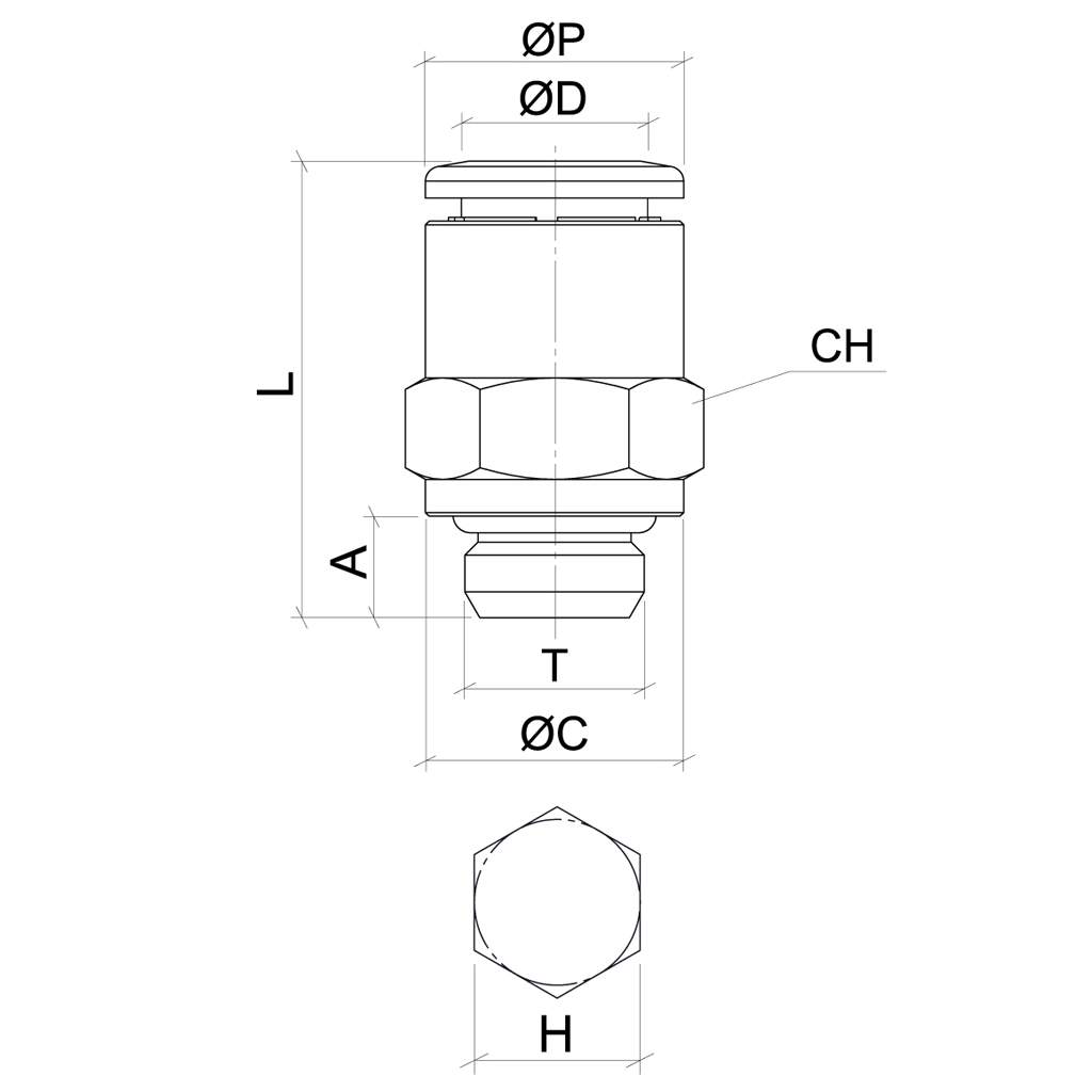 | Varianten: | ØD | T (BSPP) | ØP | ØC | A | L | CH | H |