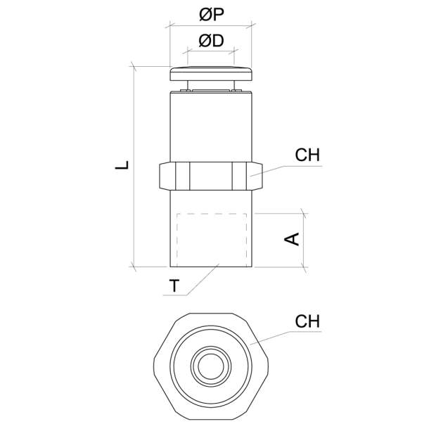 | Varianten: | ØD | T (BSPP) | ØP | A | L | CH |