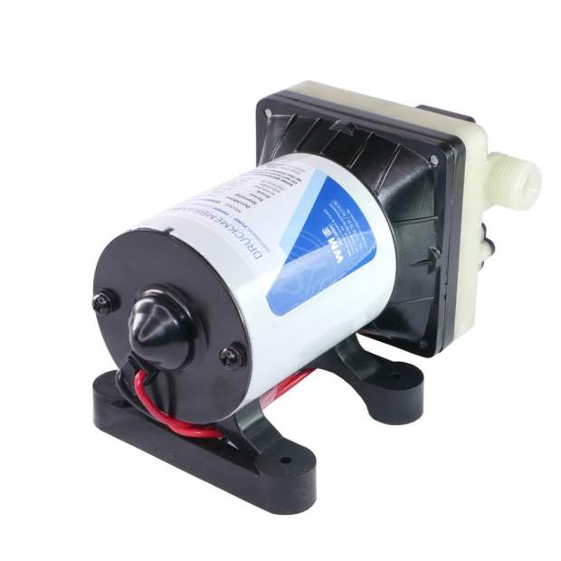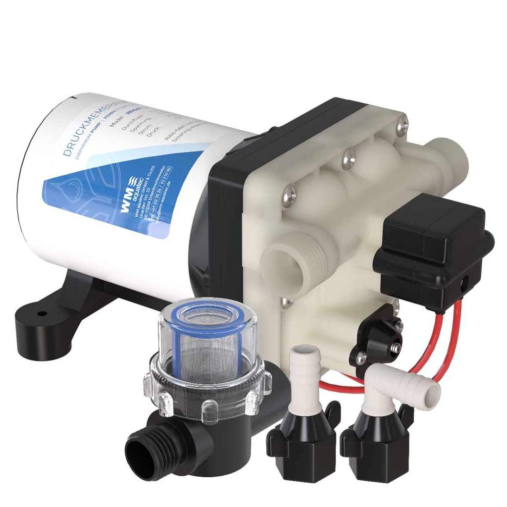 Die MWP-12 Diaphragma-Membranpumpe hat bei pulsationsfreiem Betrieb eine Förderleistung von 11,6 Liter Durchfluss pro Minute (freier Fluss). Die Pumpe wird als Förderpumpe zum Aufbau des notwendigen Wasserdrucks in Wasserversorgungs- und Wasseraufbereitungssystemen eingesetzt (z.B. bei Entnahme des Wassers aus einem Tank). Die Membranpumpe ist durch die 4-Kammer-Technologie und die vollgummierten Antivibrationsfüße sehr leise. Alle verwendeten Materialien sind trinkwasserecht. Die Förderpumpe ist außerdem selbstansaugend bis 4m und trockenlauffest. Durch den integrierten Druckschalter kann die Pumpe automatisch ein- und ausgeschaltet werden. Die Schaltschwelle ist im Bereich 1,9 bis 3,8bar einstellbar.
