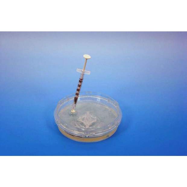 - Einspritzen der Probe durch die Dichtung in die Petrischale